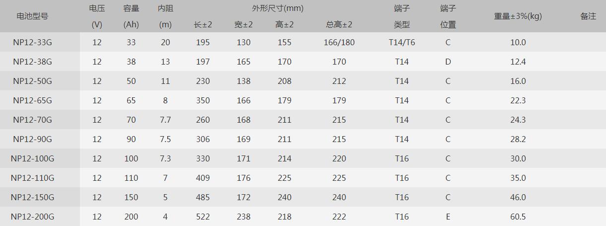 容量范圍:33Ah-3000Ah(25°C)